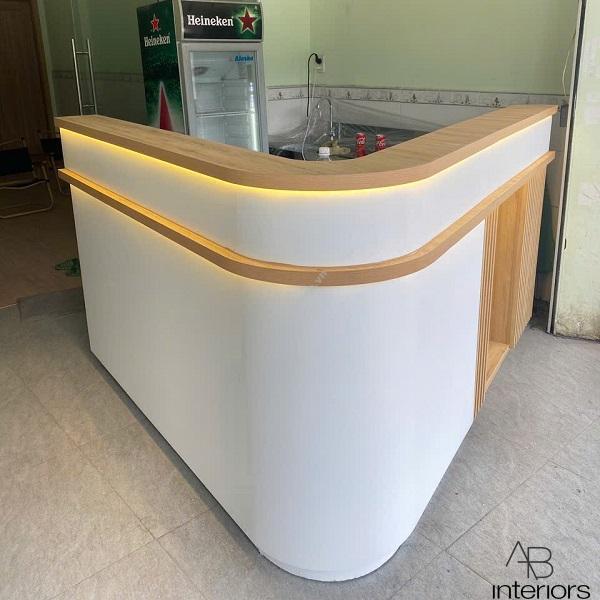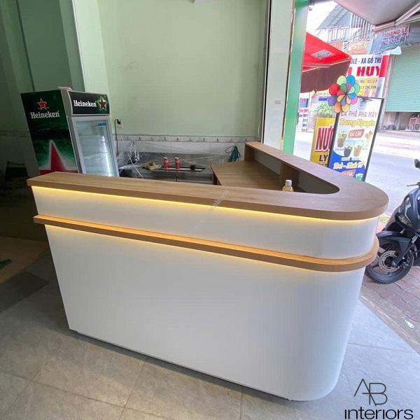 - Chất liệu bền bỉ: Thùng quầy làm từ gỗ MDF chống ẩm cao cấp, chống cong vênh, mối mọt, giữ quầy ổn định lâu dài.