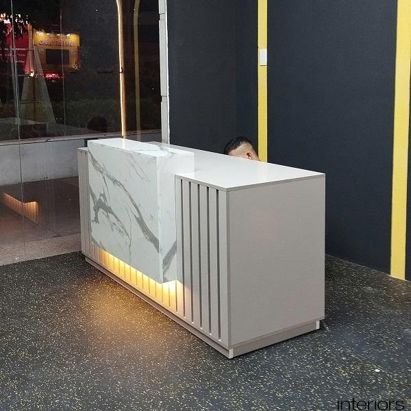 Quầy lễ tân 1m8 lam sóng gỗ QLT068