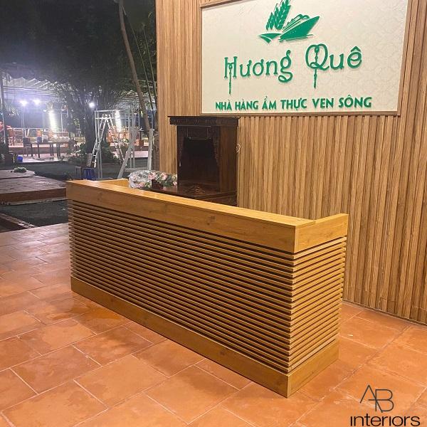 - Mẫu mã sang trọng với hệ lam sóng ngang: Quầy được thiết kế với hệ lam sóng ngang độc đáo, tạo nên sự khác biệt và điểm nhấn thú vị cho không gian lễ tân. Hệ lam sóng này không chỉ mang lại vẻ đẹp thẩm mỹ mà còn giúp phân chia không gian một cách tinh tế, tạo cảm giác thanh thoát, hiện đại và chuyên nghiệp.
