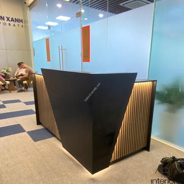 - Tone màu đen kết hợp vân gỗ: Quầy được thiết kế với tone màu đen kết hợp vân gỗ, mang đến sự sang trọng, thanh lịch và dễ dàng phối hợp với nhiều phong cách nội thất. Màu sắc này không chỉ tạo cảm giác ấm cúng, chuyên nghiệp mà còn dễ dàng kết hợp với các màu sắc và đồ nội thất khác trong không gian văn phòng.
